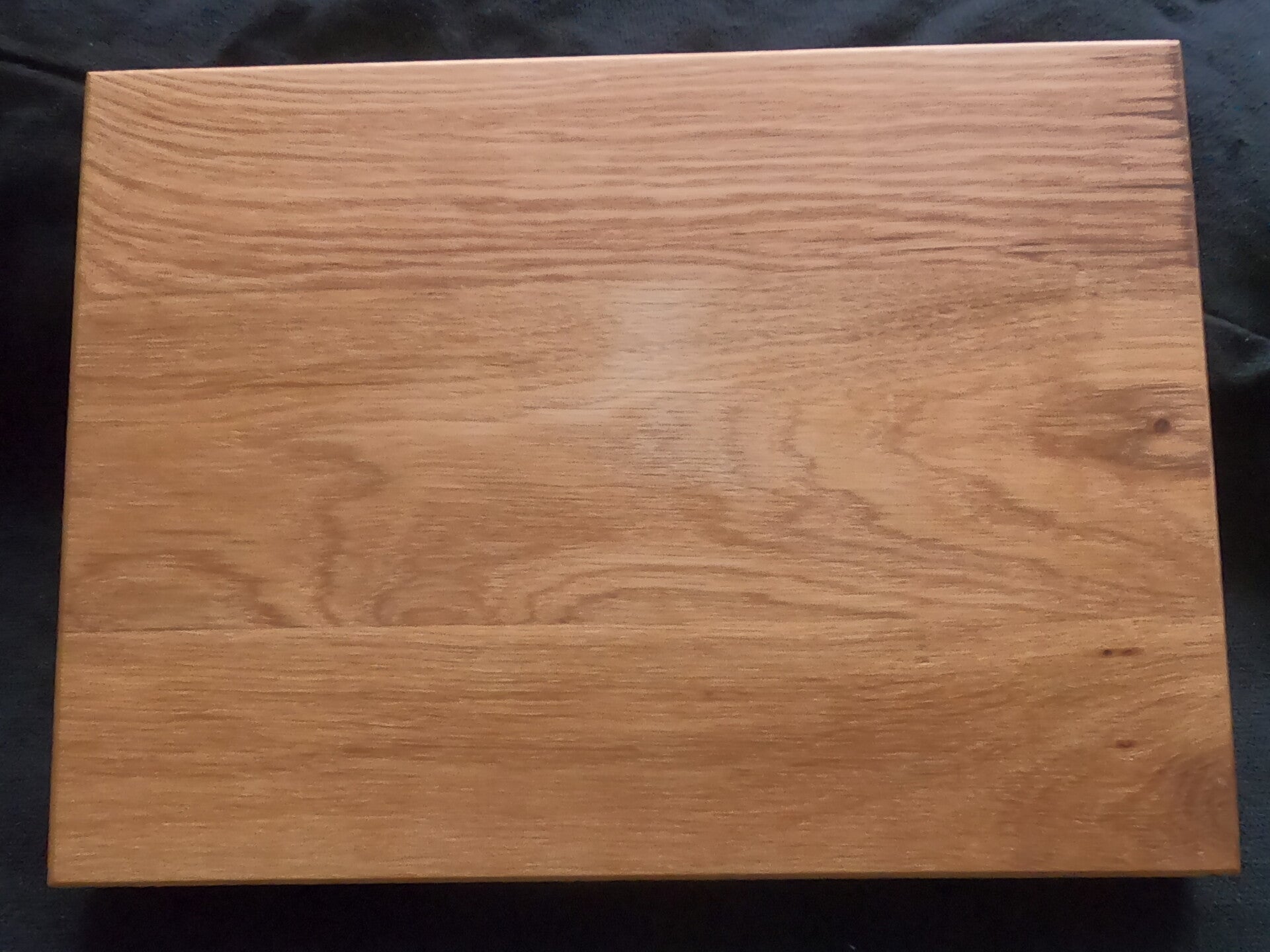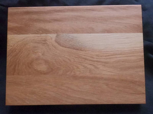 Dieses Brett im einfachem Design, passt in jede Küche. Es wurde aus polierter und mit Lein-Öl versiegelter Eiche gefertigt.